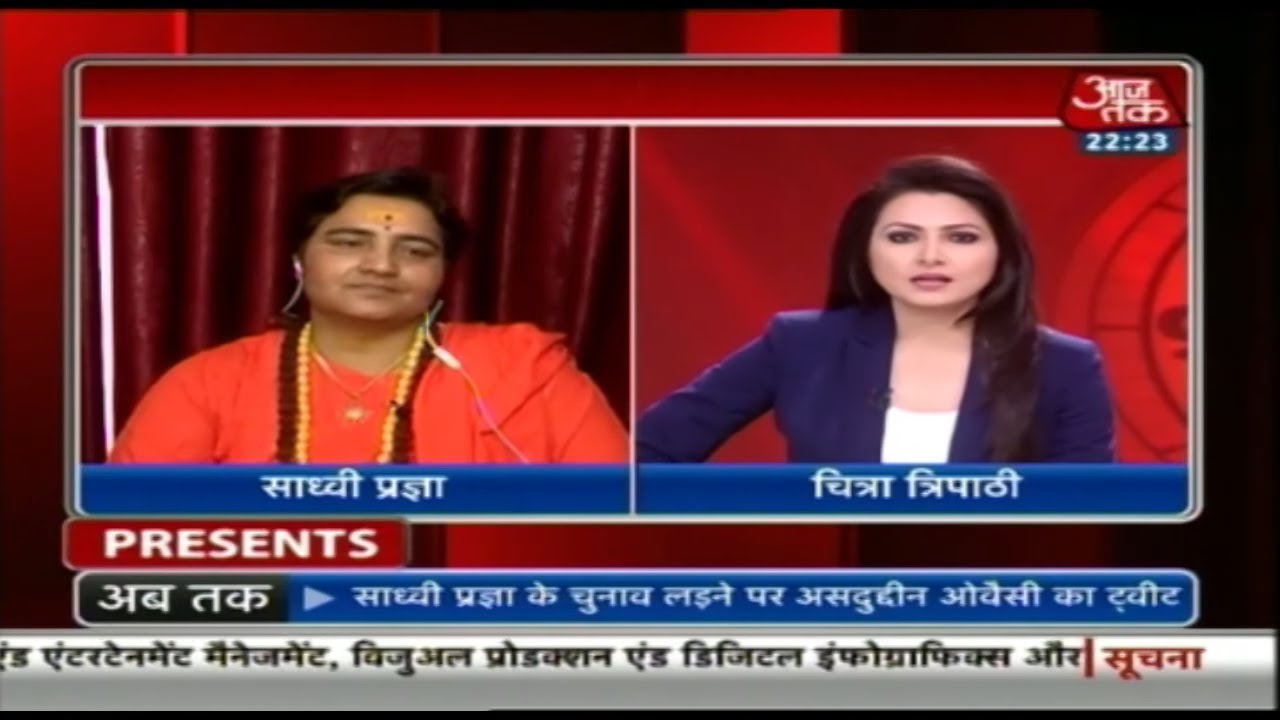 भोपाल से भारतीय जनता पार्टी की उम्मीदवार साध्वी प्रज्ञा ठाकुर ने कांग्रेस पर करारा हमला बोला है. उन्होंने कहा कि कांग्रेस ने उन्हें षड्यंत्र के साथ फंसाया है. उन पर जो भी आरोप लगे वह उनकी वजह से ही लगे हैं. साध्वी प्रज्ञा ने स्वीकार किया कि वह अभी ज़मानत पर हैं और उन्हें एनआईए ने क्लीन चिट दी है. आज तक से बात करते हुए साध्वी प्रज्ञा ने कहा कि NIA ने खुद कहा है कि वह आतंकवादी नहीं हैं. उन्होंने कहा कि कांग्रेस का उन पर सवाल उठाने का हक नहीं है, क्योंकि उनकी पार्टी का राष्ट्रीय नेतृत्व भी ज़मानत पर बाहर है. #SadhviPragya #Bhopal #Malegaon #LokSabhaElections2019 AajTak | Hindi News | Aaj Tak Live | Aajtak News | आज तक लाइव ------------------------------------------------------------------------------------------------------------- AajTak Live TV Watch the latest Hindi news Live on the World's Most Subscribed News Channel on YouTube. Aaj Tak News Channel: आज तक भारत का सर्वश्रेष्ठ हिंदी न्यूज चैनल है । आज तक न्यूज चैनल राजनीति, मनोरंजन, बॉलीवुड, व्यापार और खेल में नवीनतम समाचारों को शामिल करता है। आज तक न्यूज चैनल की लाइव खबरें एवं ब्रेकिंग न्यूज के लिए बने रहें । Aaj Tak is India's best Hindi News Channel. Aaj Tak news channel covers latest news in politics, entertainment, Bollywood, business and sports. Stay tuned for all the breaking news in Hindi ! Download India’s No. 1 Hindi News Mobile App : http://bit.ly/2EHxTlT Subscribe To Our Channel: http://bit.ly/2xTASBc Official website: http://bit.ly/2zFsgBI Like us on Facebook http://bit.ly/1uTfXUW Follow us on Twitter http://twitter.com/aajtak Subscribe to our other network channels: The Lallantop https://www.youtube.com/c/thelallantop India Today: http://www.youtube.com/channel/UCYPvA... SoSorry: https://www.youtube.com/user/sosorryp... Tez: http://www.youtube.com/user/teztvnews Dilli Aajtak: http://www.youtube.com/user/DilliAajtak